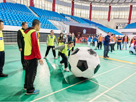 项目设计兼顾趣味性、协作性与挑战性,涵盖足球飞镖盘、超级同花顺、同心鼓颠球、多向拔河、保龄球大比拼及扔枕头大战等多项内容,充分激发教职工参与热情。