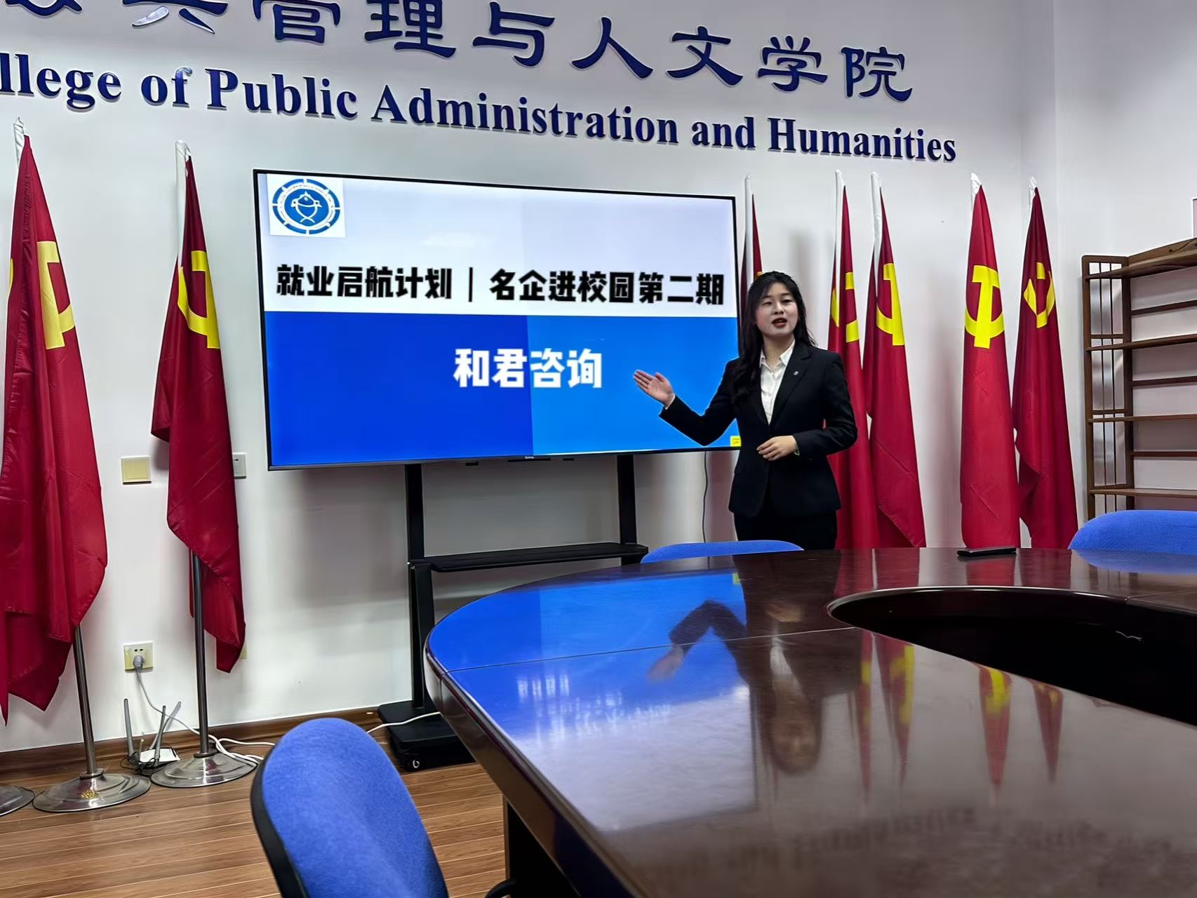 “就业启航计划|名企进校园系列活动”第二期在瀚海一党员活动室成功举办。本期活动邀请国内知名咨询机构——和君咨询合伙人走进校园,为同学们深入解读公共政策咨询行业的发展前景与人才需求。