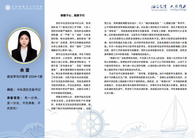 训练营结束后,参训学员纷纷表示,通过这次培训对学生干部的角色定位有深刻认识,不做“管理者”要做“服务者”的意识更加明确,将以此次“明德计划”为新起点,把所学所悟转化为服务同学的实干之力,在履职尽责中践行初心使命,努力成长为让组织放心、让同学满意的新时代学生骨干。