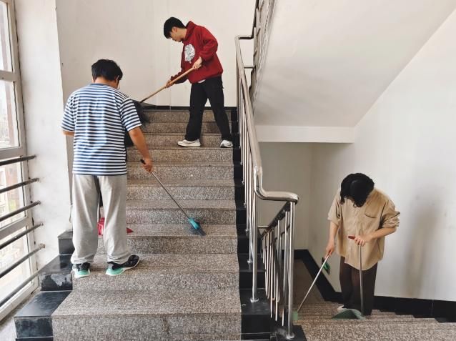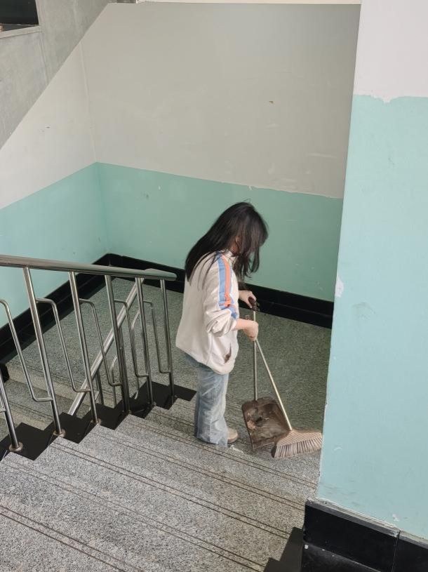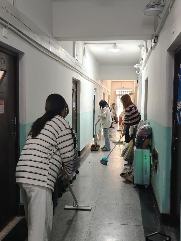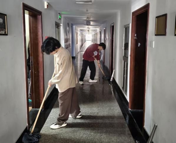 持续推进宿舍楼公共区域卫生整治工作。学生们分工协作、细致作业,认真清扫走廊、拖拭地面、擦拭楼梯扶手、清理卫生死角、规整公共杂物,以实际行动维护公共空间整洁,展现了新时代青年学生的责任意识与良好精神风貌。