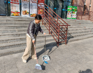 组织学生对司南广场、中心食堂南侧至谊华二公寓路段等公共区域开展集中清扫,全面清理路面及绿化带杂物,擦洗公共雕塑与护栏,规范整理宿舍区非机动车辆,保障通行顺畅。