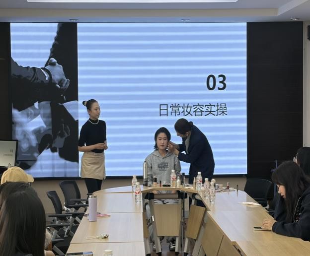 培训会上,肖茹月老师结合多年行业经验与专业资质,从形象管理的核心价值切入,系统讲解妆容打造、仪态塑造与审美提升的实用方法。她指出,得体的形象不仅是外在表达,更是内在自信与修养的体现,有助于学子在校园生活、人际交往与各类场合中展现从容姿态。